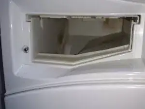 Снимите винт в нижней левой части, который находится за лотком для моющих средств.