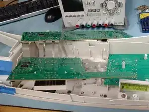 Отвинтите левую печатную плату. Примечание: у моей платы было семь посадочных мест под винты, но установлено только шесть. Возможно, это не важно, но я сделал фотографию и убедился, что возвращаю винты в те же отверстия.