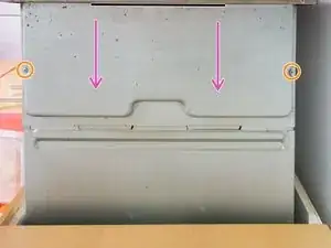 затем сдвиньте верхний металлический лист к задней части духовки