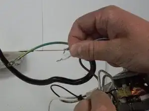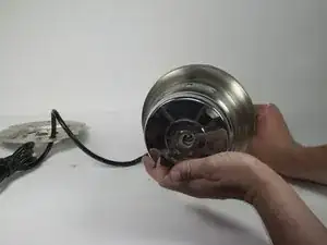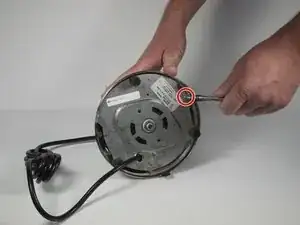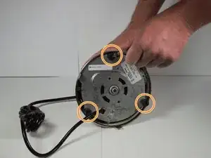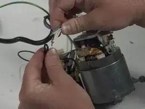 После извлечения мотора отверните винт 8 мм, к которому подключён зелёный провод, от основания блендера.