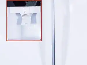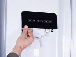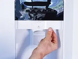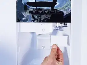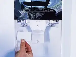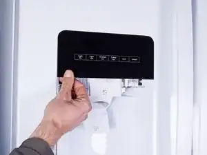 Винты панели диспенсера находятся под диспенсером, как если бы вы смотрели вверх в трубку диспенсера (где выходят кубики льда и вода).