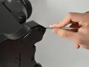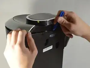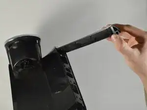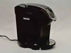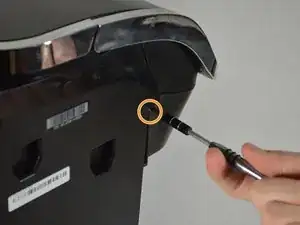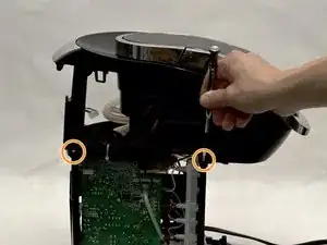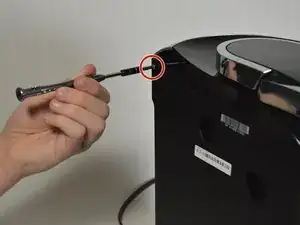 Отвинтите винт 140 мм, расположенный под концом пустого слота, проходящего по левой стороне Keurig, используя отвертку Phillips #1.