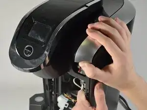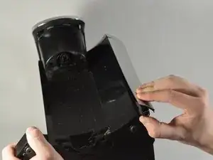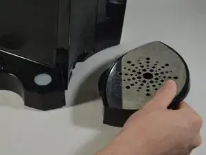 Другой рукой потяните вниз, чтобы отщелкнуть переднюю панель корпуса кофеварки.