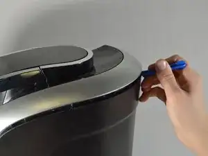 Отделите боковую панель от верхней рамы кофеварки, при необходимости помогая себе синей лопаткой.