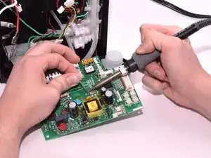Чтобы полностью освободить плату управления, необходимо распаять соединения, удерживающие её. Воспользуйтесь нашим руководством «Как паять и распаивать соединения», чтобы правильно и безопасно выполнить эту процедуру.