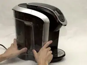 Руками отожмите заднюю наружную панель корпуса с правой стороны Keurig.