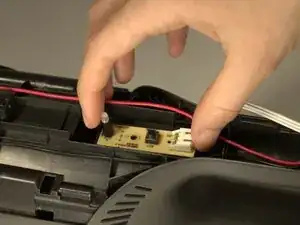 Удалите два винта 12,2 мм под кнопкой контейнера для пыли с помощью отвертки Torx TR9.