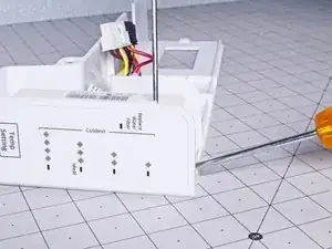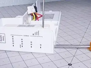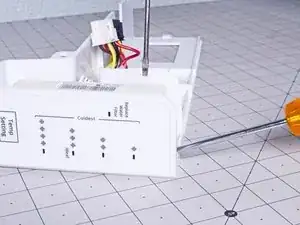 Используйте плоскую отвертку или аналогичный инструмент, чтобы сжать пластиковую защёлку, фиксирующую плату управления температурой.