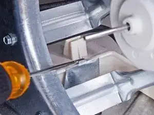Используйте торцевую головку 1/4 дюйма, чтобы ослабить винт крепления водяного шланга настолько, чтобы задняя панель могла свободно двигаться.