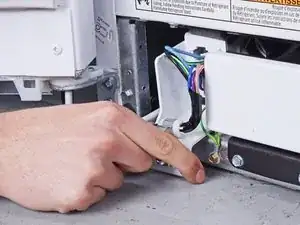 Вытяните жгут проводов прямо из шасси, чтобы получить доступ к поддону для слива.