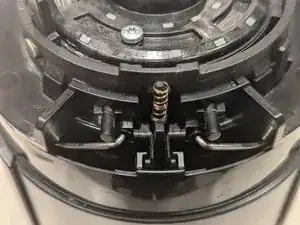 Снимите пружину с каждого рычага механизма фиксации капсулы и отложите. Запомните, какая пружина соответствует какой стороне механизма.