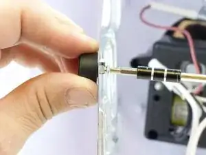 Удерживайте пальцем заднюю часть подставки, которую вы откручиваете, для поддержки.