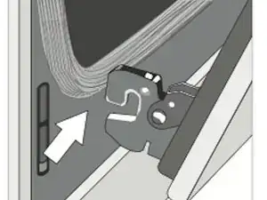 Закройте дверцу духовки до упора на стопоры петель, зафиксировав петли под нужным углом для снятия дверцы. Верхняя часть дверцы будет приоткрыта примерно на 7 дюймов. Это снимает натяжение пружин с петель, чтобы дверца легко снималась.