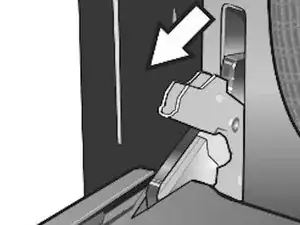 Опустите оба рычага петель дверцы до самого нижнего положения, как показано на иллюстрации. Левый и правый рычаги петель могут немного отличаться, но работают одинаково.