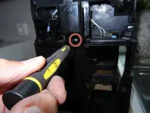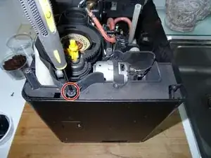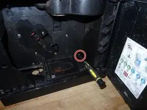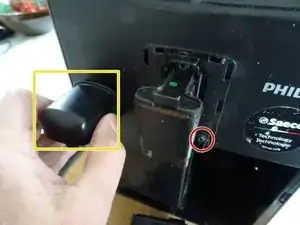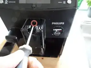 Снимите винт Torx T10 в верхней кромке носика раздачи кофе.