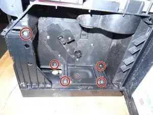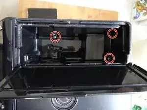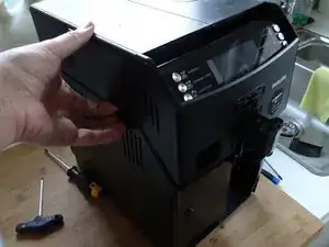 Снимите оба винта Torx T10 слева и справа на нижнем краю носика раздачи кофе.