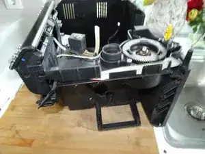 Если вы ещё этого не сделали: открутите центральный винт Torx T10 внизу распределителя носика кофе.