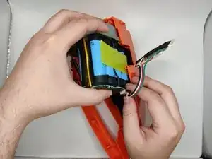 Нажмите на синие кнопки рядом с боковыми сторонами светодиодов батареи, чтобы снять верхнюю половину.