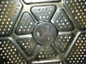 Хорошим индикатором того, что вы имеете дело с аналогичной моделью, является наличие трех винтов на конце барабана, которые вы сможете увидеть после открытия двери устройства. В этих устройствах барабан удерживается на месте осью, соединенной с тремя винтами, которые вы видите на картинке, и фрикционными накладками на передней панели сушилки.