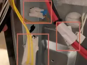 Каждая конфорка имеет чёрное и красное соединение, подключённое к клемме. Отсоедините их, чтобы полностью отключить конфорки от агрегата.