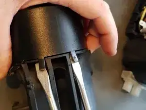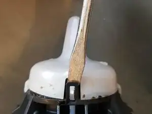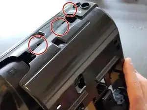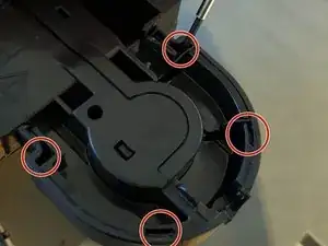 Подденьте обе защёлки с одной стороны носика, затем обе с другой стороны.