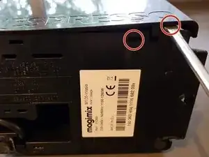 Фото 2 и 3: вставьте отвёртку и слегка покачайте, чтобы отжать защёлки. Всего 4 защёлки.