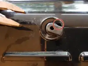 Вставьте 2,5 мм толстый заострённый инструмент (стержень или плоский) в проволочную петлю, выходящую из центра-низа пластиковой лицевой части. Не выводите петлю дальше наружу, но можно расширить её менее чем на 1 мм подходящей отвёрткой по ширине.