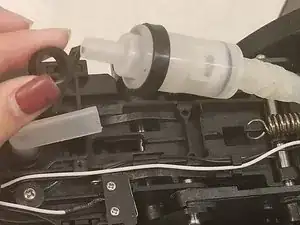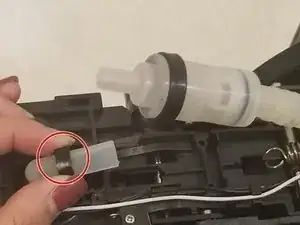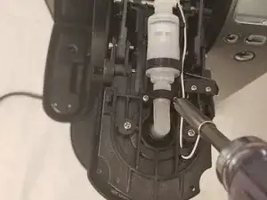 Используя отвёртку Phillips #0, выверните два винта длиной 7,0 мм, расположенные по бокам трубки рядом с прокалывающим игольчатым клапаном.