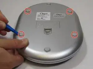 Поднимите наклейку внизу, где находится логотип “Ozeri”, чтобы обнаружить винт.