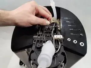 Крепко возьмите дополнительный насос для воды и снимите одну из пластиковых трубок с насоса.