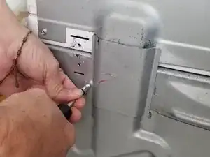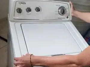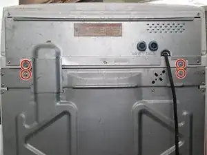 Используйте вороток на 1/4 дюйма, чтобы снять четыре 9,5 мм шестигранных винта на задней части машины, которые фиксируют верхнюю крышку загрузки и панель управления.