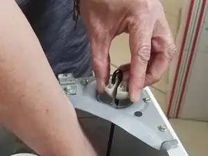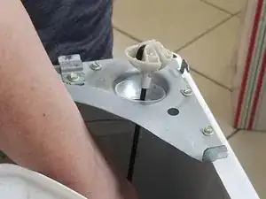 Когда шарнир окажется в воздухе, поверните против часовой стрелки и нажмите вниз, чтобы освободить стержень из замкового механизма шарнира.