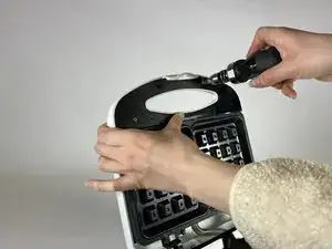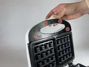 Совместите отверстия для винтов на пластиковой крышке с крышкой вафельницы.