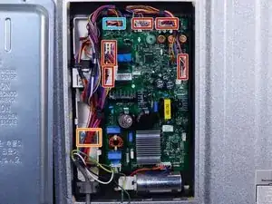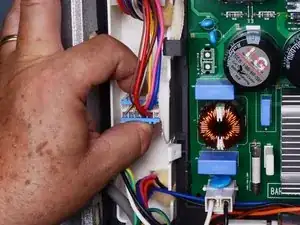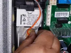 Снимите два разъёма, потянув их прямо с конденсатора, чтобы отключить его.