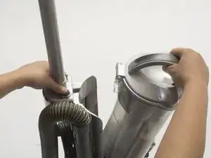 Одновременно откройте пылесборник, направив коническую половинку вниз.