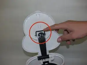 Аккуратно отсоедините пылезащитную крышку, выводя из зацепления фиксирующие штифты, начиная с одной стороны.