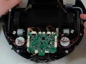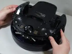 Аккуратно установите нижнюю часть устройства на рабочую поверхность колёсиками вниз, чтобы открылся доступ к внутренним компонентам.