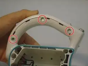 Поверните пылесос так, чтобы увидеть логотип компании. Затем удалите два винта на корпусе пылесоса.