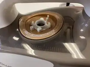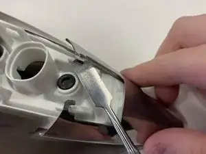 С помощью металлической лопатки снимите металлическую деталь на носике утюга.
