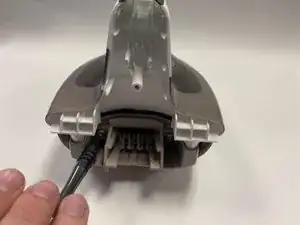 Снимите четырёхконтактный адаптер внутри утюга, захватив чёрную пластиковую деталь и потянув её прямо наружу.