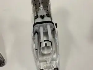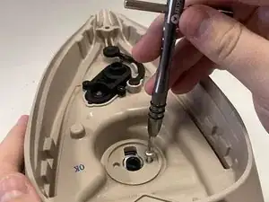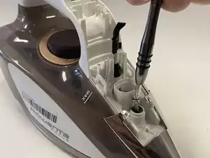 С помощью отвертки T20 отвинтите винт 20 мм, который находился под металлической деталью на носике утюга.