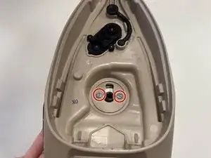 Снимите заднюю крышку, обнажив проводку внутри утюга.