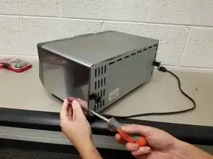 Удалите два шурупа 4мм на 8мм с задней стороны тостера.