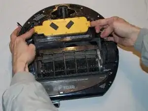 Затем переверните Roomba и извлеките батарею.