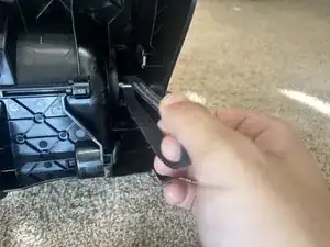 Возьмите ремень и согните его, чтобы удалить из пылесоса.