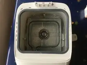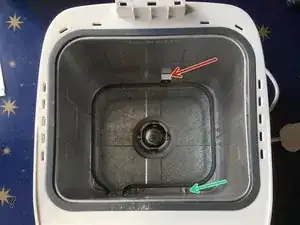 Альтернативный способ ремонта — отрезать пластиковое основание хлебопечки, чтобы добраться до ремня, но это оставляет отверстие в основании, что представляет опасность для маленьких рук.