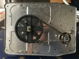Можно снять сетевую проводку или просто перевернуть металлическую пластину, чтобы открыть доступ к приводному ремню.
