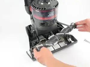 Помещение щетки ролика в направляющие натянет ремень; после установки щетки прокрутите ее рукой несколько раз, чтобы убедиться, что она вращается свободно.