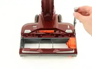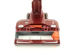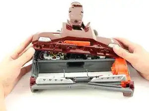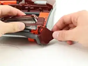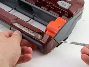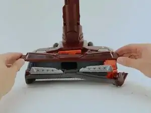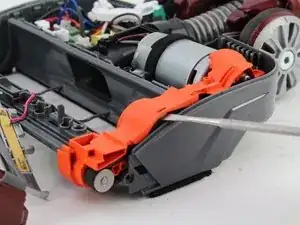 Используйте лопаточку, чтобы отсоединить оранжевый отсек ремня привода от пылесоса.