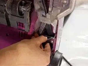 Нажмите красный рычаг разблокировки вправо.